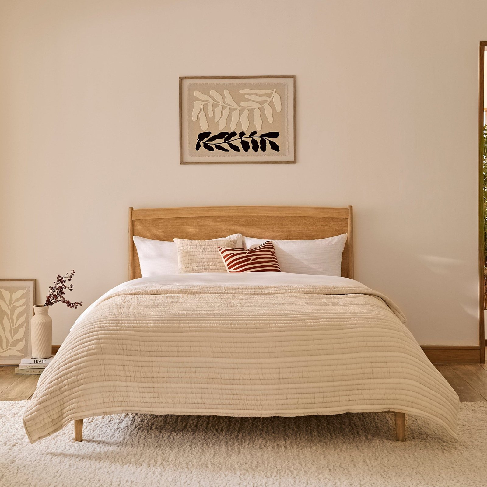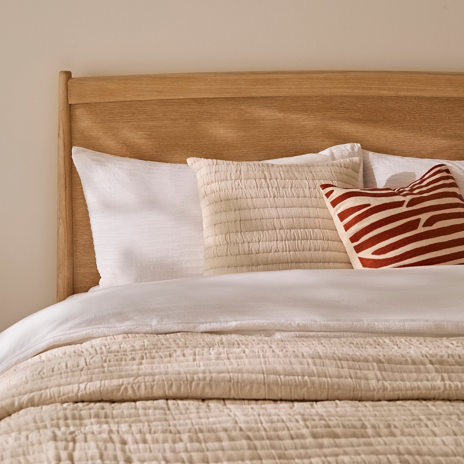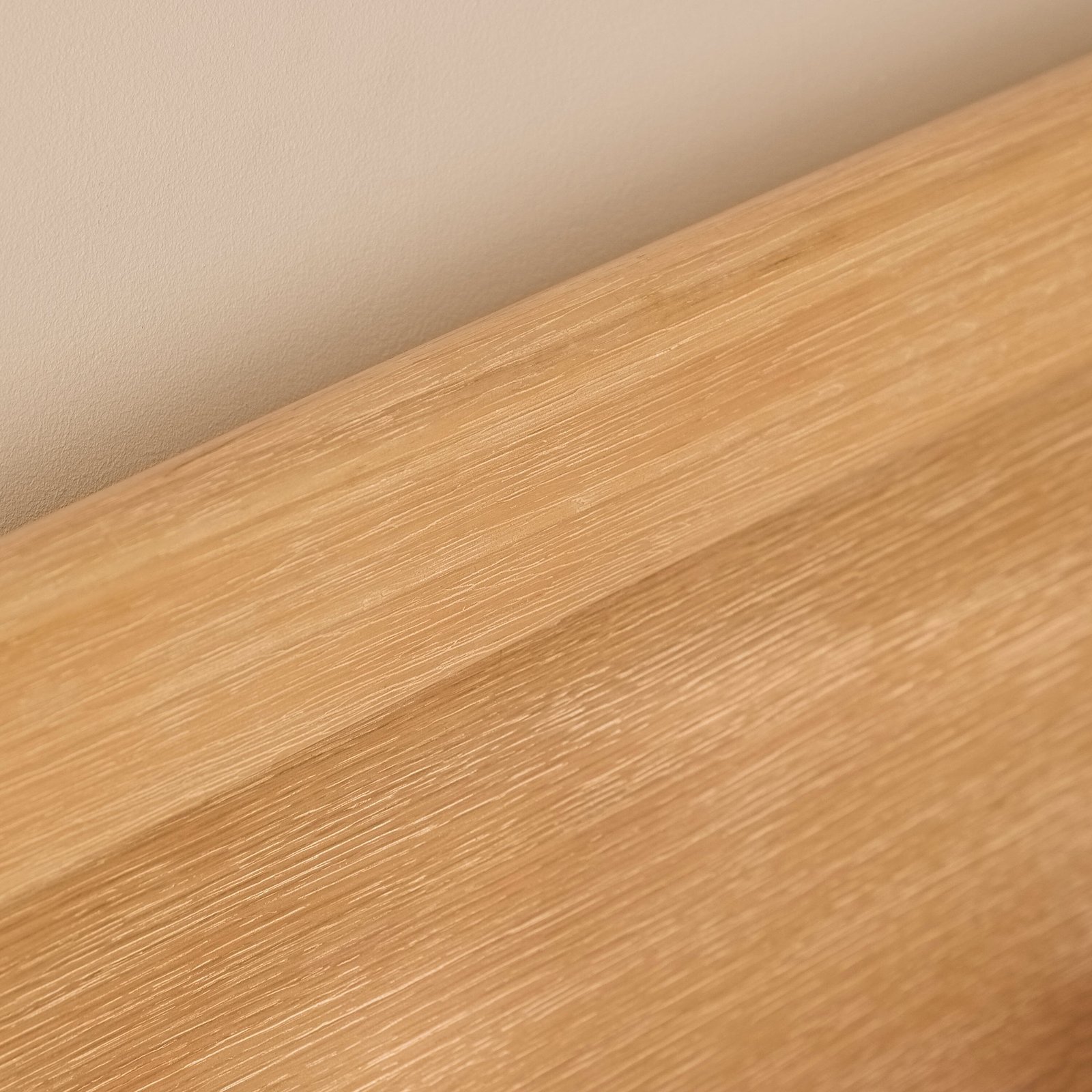 The Ida bed showcases gorgeous whitewash oak that highlights the wood’s natural grain whilst adding a soft, luminous quality to your bedroom. The king-size proportions provide generous sleeping space, whilst the clean-lined design creates a sense of calm and order. Each piece celebrates the unique character of natural wood, making your bed frame truly one-of-a-kind.