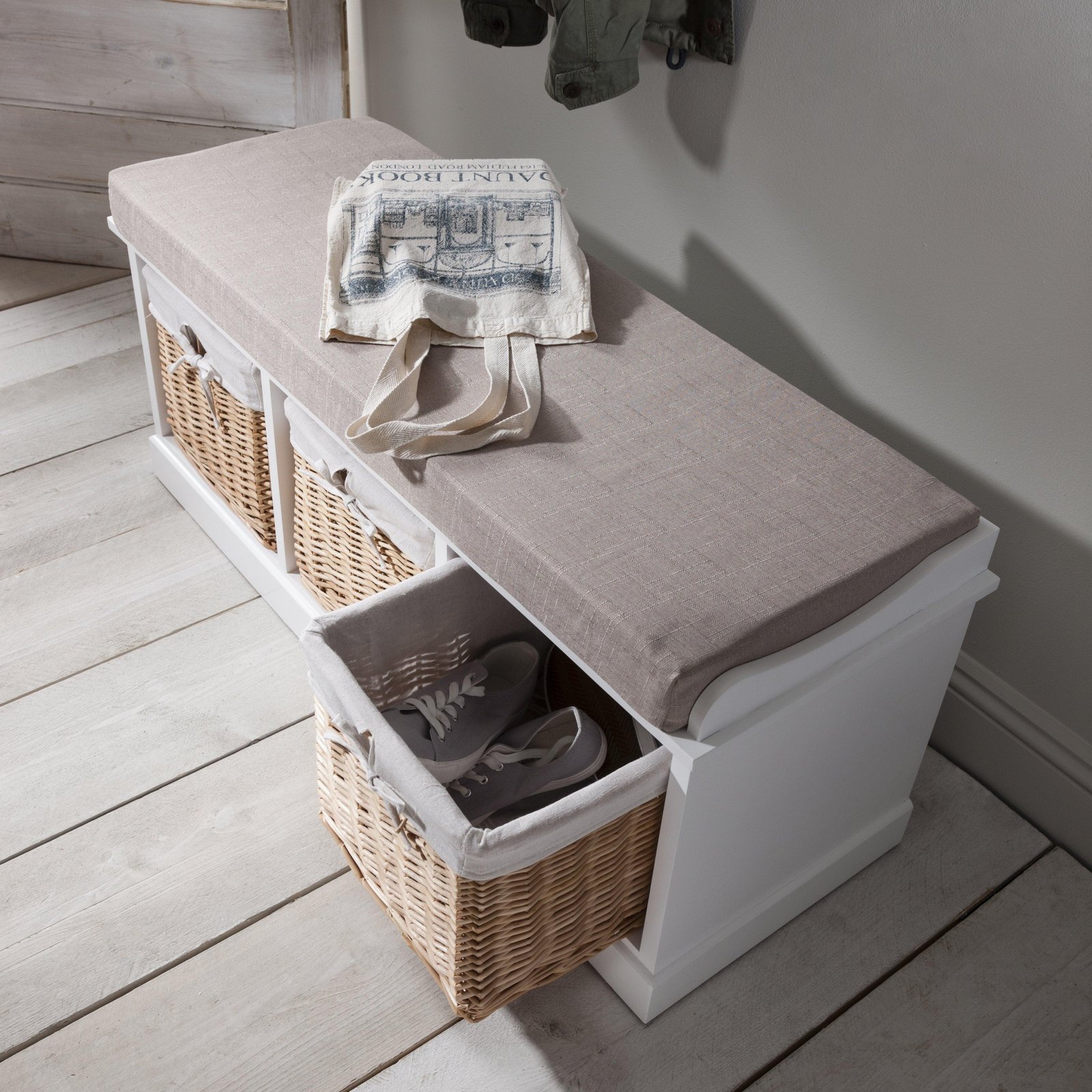 Fyfield 3 Seater Hallway Storage Bench – White – Elegant Functionality